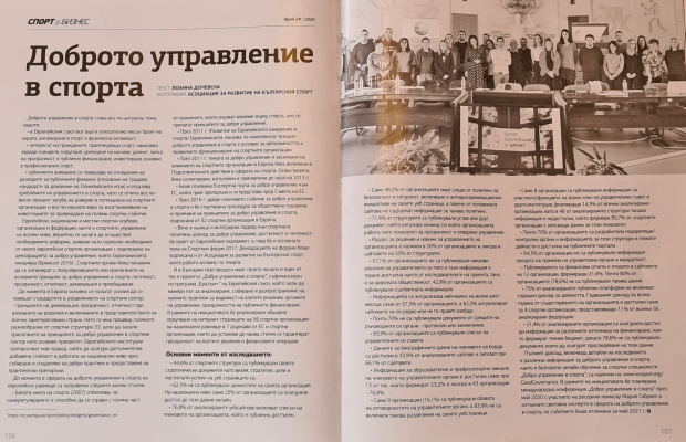 Attached you will find one of the topics in the edition – ‘’Good governance in sports’’, presented by Joanna Dochevska, Chairwoman of the Bulgarian Sports Development Association. For other interesting materials find out ‘’SPRINT’’ magazine in the retail network.