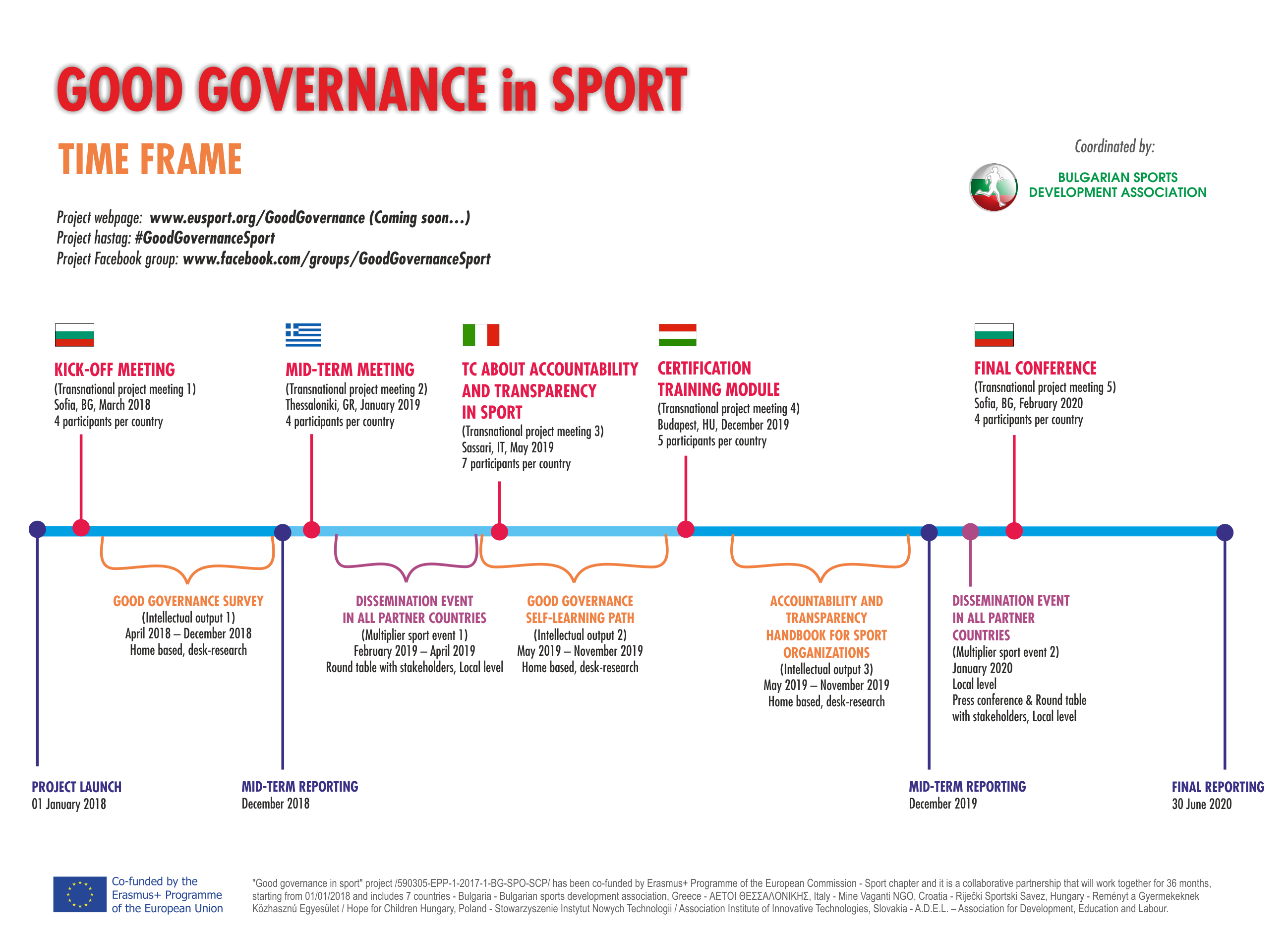 Projekt "Dobre zarządzanie w sporcie" został współfinansowany z programu Erasmus+ w ramach Komisji Europejskiej - rozdział Sport, i jest to partnerstwo oparte na współpracy przez 36 miesięcy, zaczynając od 01.01.2018 r. i obejmuje 7 krajów - Bułgaria - Bułgarskie stowarzyszenie rozwoju sportowego, Grecja - ΑΕΤΟΙ ΘΕΣΣΑΛΟΝΙΚΗΣ, Włochy - Mine Vaganti NGO, Chorwacja - Riječki Sportski Savez, Węgry - Reményt a Gyermekeknek Közhasznú Egyesület / Hope for Children Węgry, Polska - Stowarzyszenie Instytut Nowych Technologii, Słowacja - A.D.E.L. - Stowarzyszenie na rzecz Rozwoju, Edukacji i Pracy.